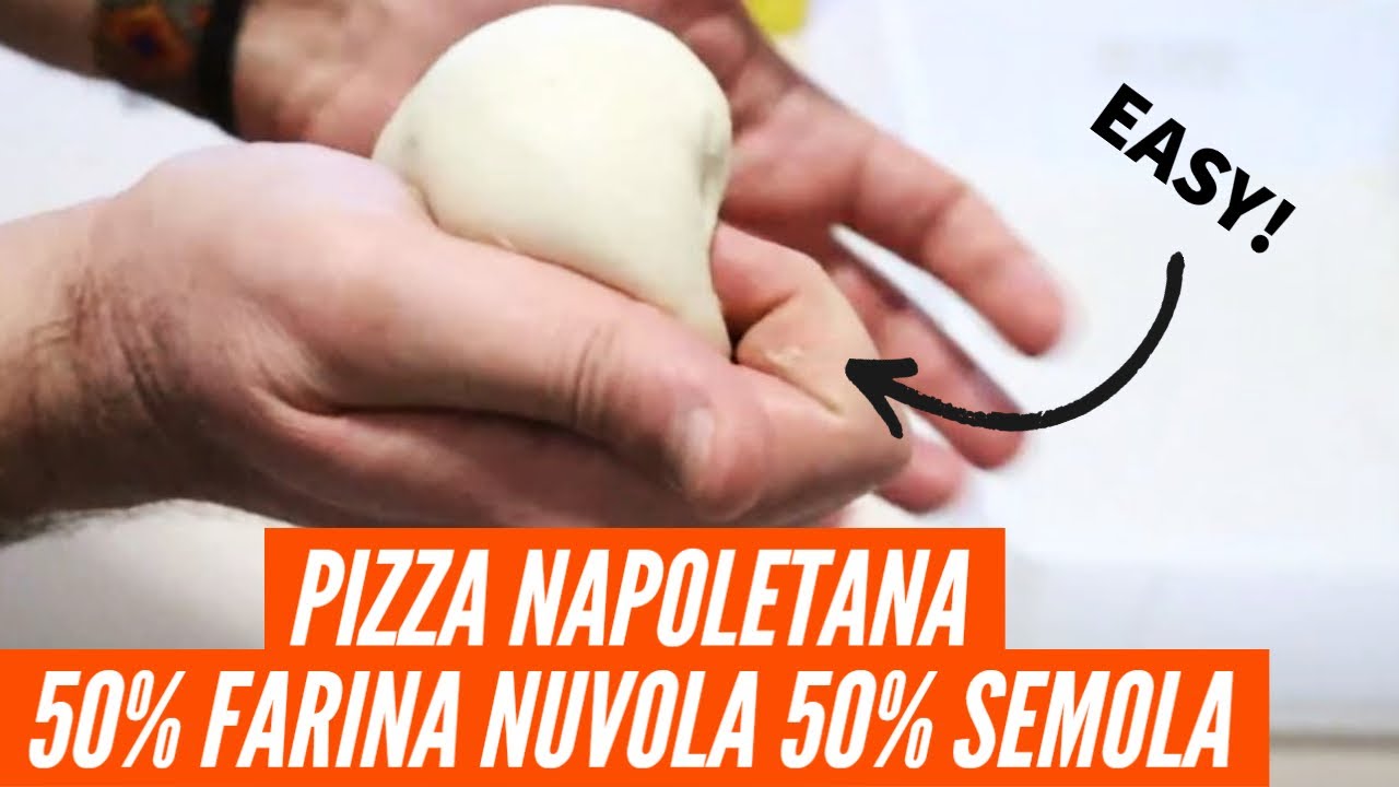 Oggi ceniamo con la pizza napoletana fatta in casa, 50% farina Caputo Nuvola 50% semola rimacinata di grano duro. Ho già provato la farina Nuvola con una ricetta vista precedentemente, oggi la sperimento mixata con la semplice semola, e posso dire che il risultato mi ha davvero sorpreso e incuriosito: pizza scioglievole all’interno, con un gustosissimo velo di croccantezza sul cornicione.